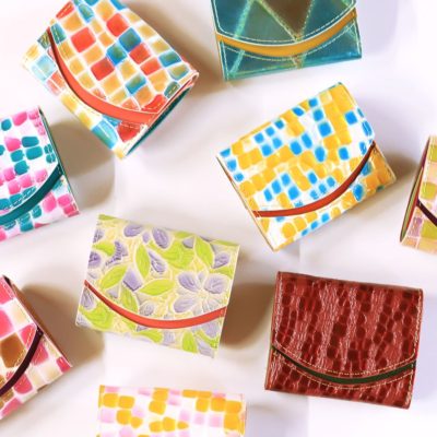 明日4/26日はエナメルの革を集めた「エナメル」祭りです。世界でひとつだけの小さいふ。1000個祭り!