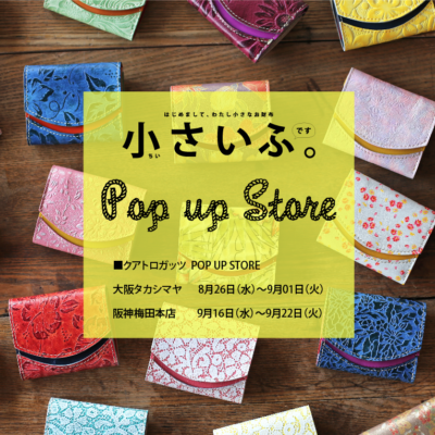 by クアトロガッツSTAFFクアトロガッツ POP UP STORE 明日より阪急高槻で『小さいふ POP UP STORE』オープンします♪ 9月30日(水)から10月06日(火)までの1週間の開催です。 お待たせしました。およそ1年ぶりの地元で […]