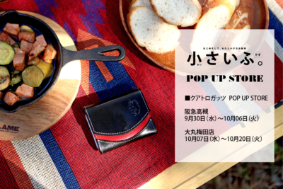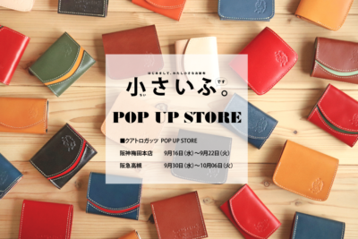 by クアトロガッツSTAFFクアトロガッツ POP UP STORE 阪急高槻で『小さいふ POP UP STORE』開催中♪ 9月30日(水)から10月06日(火)までの1週間の開催です。 お待たせしました。およそ1年ぶりの地元での開催となります […]