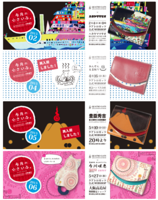 by クアトロガッツSTAFF今月の小さいふの追加分が仕上がりました。 WEBSHOPで販売しておりますので 是非ご覧ください。 クアトロガッツ × アーティスト ハタヤママサオ クアトロガッツ × 温泉 × 豆絞り クアトロガッツ × 豊臣秀吉『大 […]