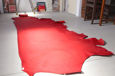 by クアトロガッツSTAFF新しい革が届きました。 しっとりとオイルを含んだ柔らかなシボのある革らしい革です。 いつ登場するかはお楽しみに。 革は鞣す段階で、作業がしやすいように半分のサイズになります。 その半裁の革が5枚位が1束になってロールで届 […]
