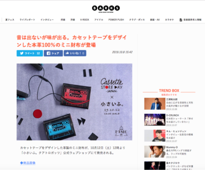 音楽情報サイトBARKSに掲載いただきました「小さいふ×カセットストアデイ コラボペケーニョ」