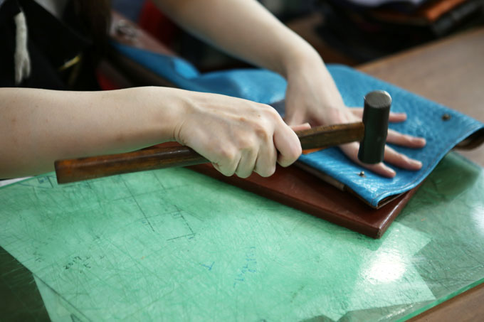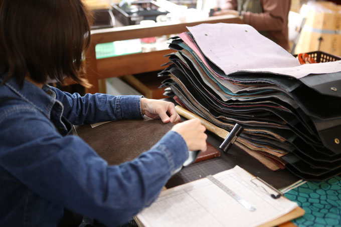 革を抜いていく裁断の音がいつも聞こえます。