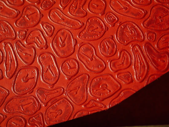 イタリアのファッション・デザインの中心地でクリエーターが集まる中心地ミラノだけに ダリの絵をモチーフにした奇抜な時計柄の革が生まれたのでしょうか。