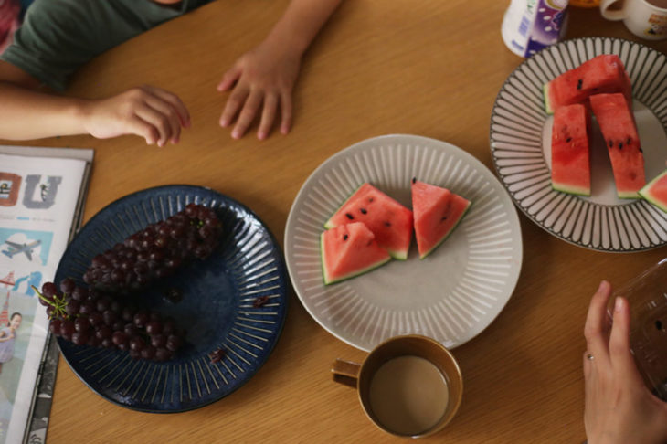 先日は毎年恒例行事である工房の近所で上がる「弁天の花火」をスタッフで見に行きました。雨が降ったので右手で傘を差し、左手でパピコを食べるスタッフたち。